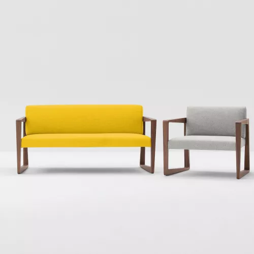 Askew 5C37 is een loungesofa met een frame van beukenhout, beschikbaar in diverse gebeitste uitvoeringen. De zitting en rugleuning zijn gestoffeerd met slijtvaste stoffen of kunstleer, geschikt voor intensief gebruik. Dankzij de vele afwerkingsopties past deze sofa moeiteloos in elk horeca-interieur.