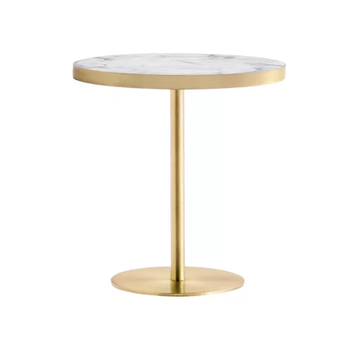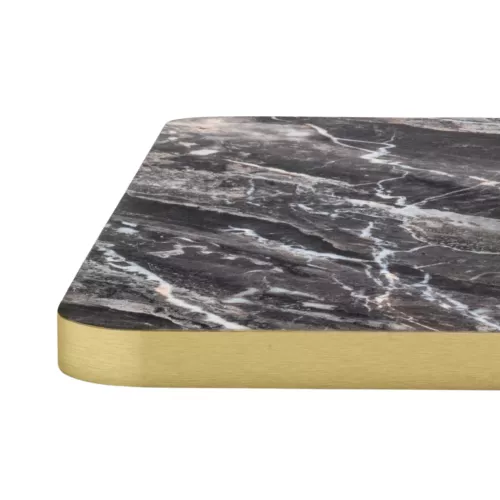 Tafelbladen met spaanplaatkern, beschikbaar in diverse vormen en maten. Voorzien van een vlakke ABS-rand in messinglook, met een dikte van 30 mm. Een stijlvolle en stevige keuze voor horeca en projectinrichting.