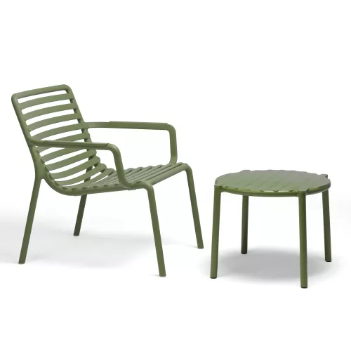 De Doga bijzettafel is een lichtgewicht, monobloc lage tafel, gemaakt van glasvezelhars, met een rond blad en een modern, praktisch design. De stapelbare constructie maakt hem gemakkelijk te verplaatsen en op te bergen. Ontworpen voor horecagelegenheden buiten, is hij gemaakt van uniform gekleurde glasvezelpolypropyleenhars met UV-additieven en een matte afwerking, wat duurzaamheid en eenvoudige hygiëne garandeert.