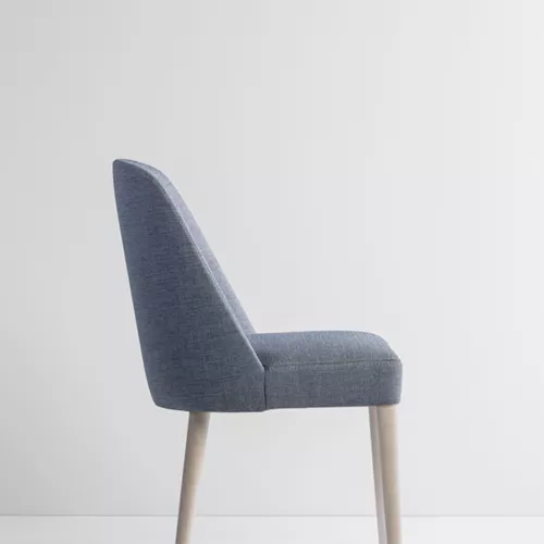 Gomo LU S heeft vloeiende, elegante lijnen en is vervaardigd uit duurzaam beukenhout met diverse beitskleuren. De gouden afwerkingen aan de poten geven een stijlvolle touch. Met professionele stoffen of kunstleer gestoffeerd, is deze stoel geschikt voor intensief gebruik in horeca.