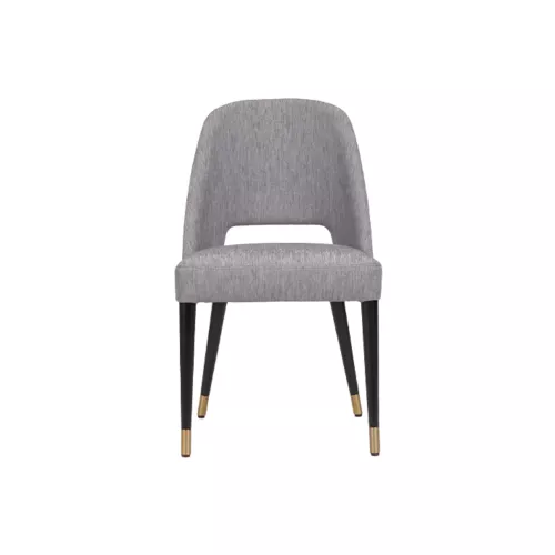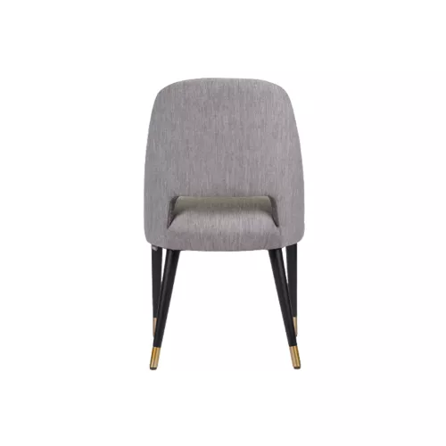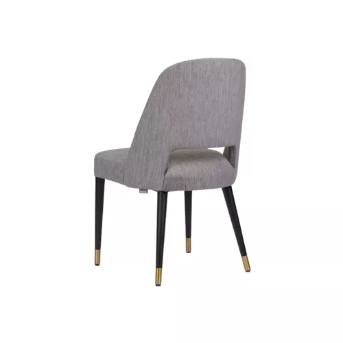 Gomo S is een elegante gestoffeerde stoel met een stevig beukenhouten frame en luxe gouden doppen op de poten. Perfect voor stijlvolle interieurs in horeca. De stofconsumptie bedraagt 1,32 meter en kan worden afgewerkt met diverse professionele stoffen.