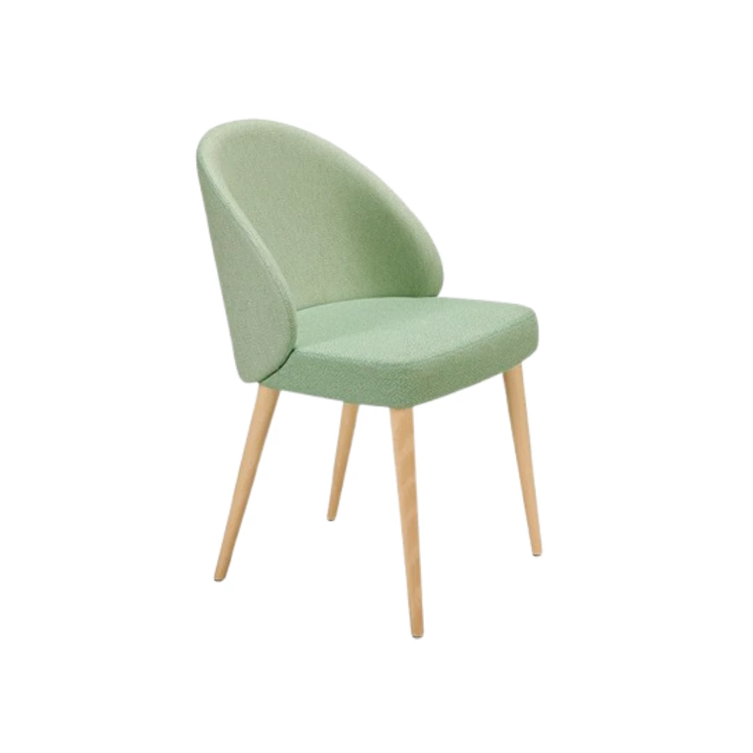 Lena S – een veelzijdige stoel gemaakt van gebeitst beukenhout met een gestoffeerde zitting en rugleuning (COM) voor comfort en stijl naar wens. Ideaal voor restaurants, cafés, fastfoodrestaurants en wachtruimtes . Hij combineert duurzaamheid, modern design en tijdloze elegantie en verfraait elk interieur.