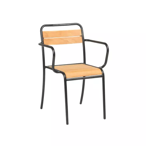 De Yogo A stoel is een stijlvolle en sterke keuze voor professioneel buitengebruik, perfect voor restaurants, terrassen en cafés. Met een stevig metalen frame en een zitvlak en rugleuning van kastanjehout, combineert hij natuurlijke uitstraling met robuuste kwaliteit. Dankzij zijn speciaal behandelde structuur is hij uitstekend geschikt voor weersbestendige toepassingen. Verkrijgbaar in een breed scala aan RAL-kleuren, kan hij gemakkelijk worden afgestemd op elk interieur of merkidentiteit. Yogo A is de ideale oplossing voor horecazaken die duurzame en elegante buitenmeubels zoeken.